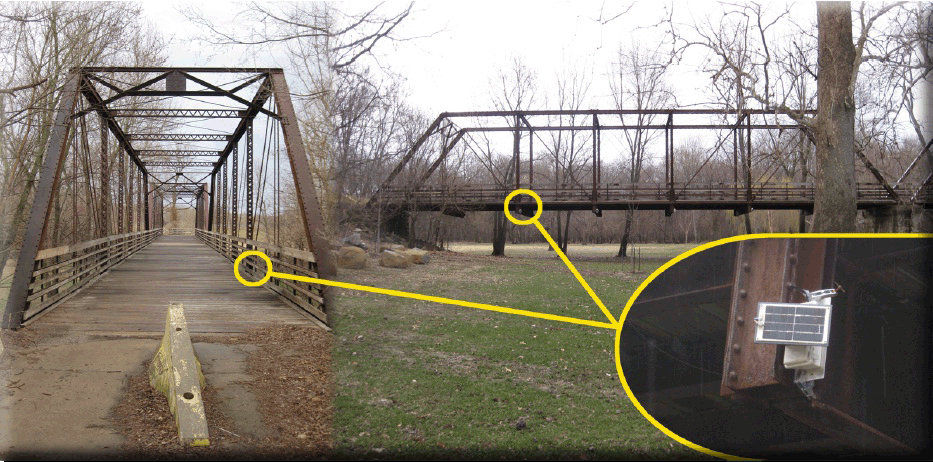 Figure below shows our experimental testbed. It is a truss bridge over the Sangamon River in Illinois.